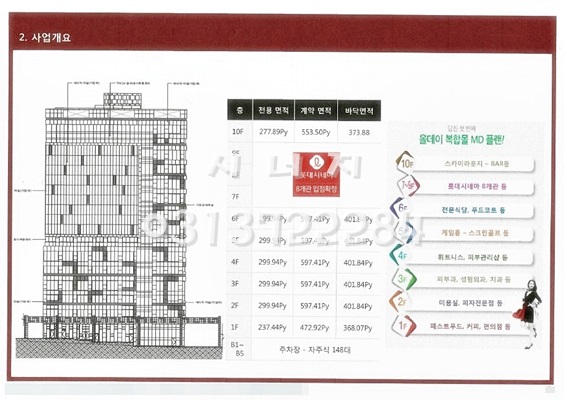지하5층부터 지상 10층으로 이루어진 건물입니다