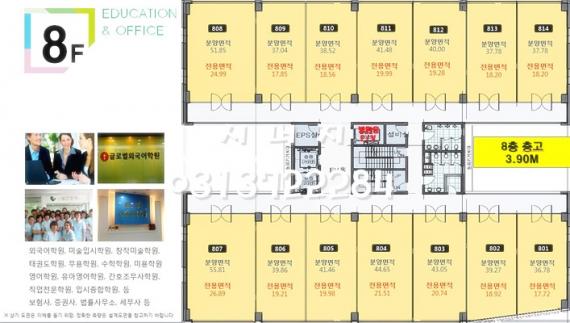 //8층은 어학원으로 임대 완료된 상태입니다//